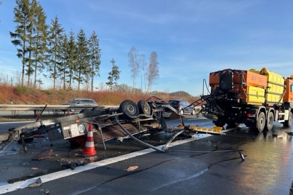Nach bisherigen Erkenntnissen ist eine Sattelzugmaschine mit Auflieger auf ein Fahrzeuggespann der Autobahnmeisterei aufgefahren. Dabei wurde der LKW mit Sicherungsanhänger erheblich beschädigt. Der Schaden wird hier auf circa 130.000 Euro geschätzt. Auch an der Sattelzugmaschine und dessen Auflieger entstand Sachschaden von geschätzten 70.000 Euro.