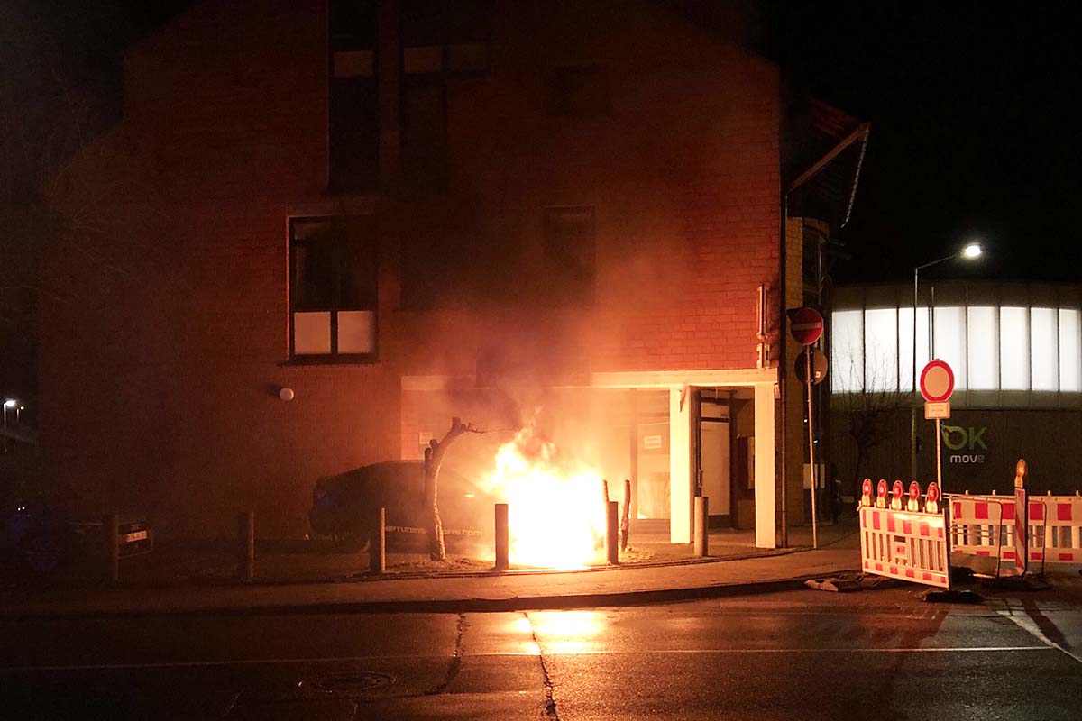 Am 19.02.2021 gegen 00:54 Uhr wurde der integrierten Leitstelle Bad Kreuznach ein brennender PKW in Höhe der Taxizentrale in Bad Kreuznach am Europaplatz gemeldet.