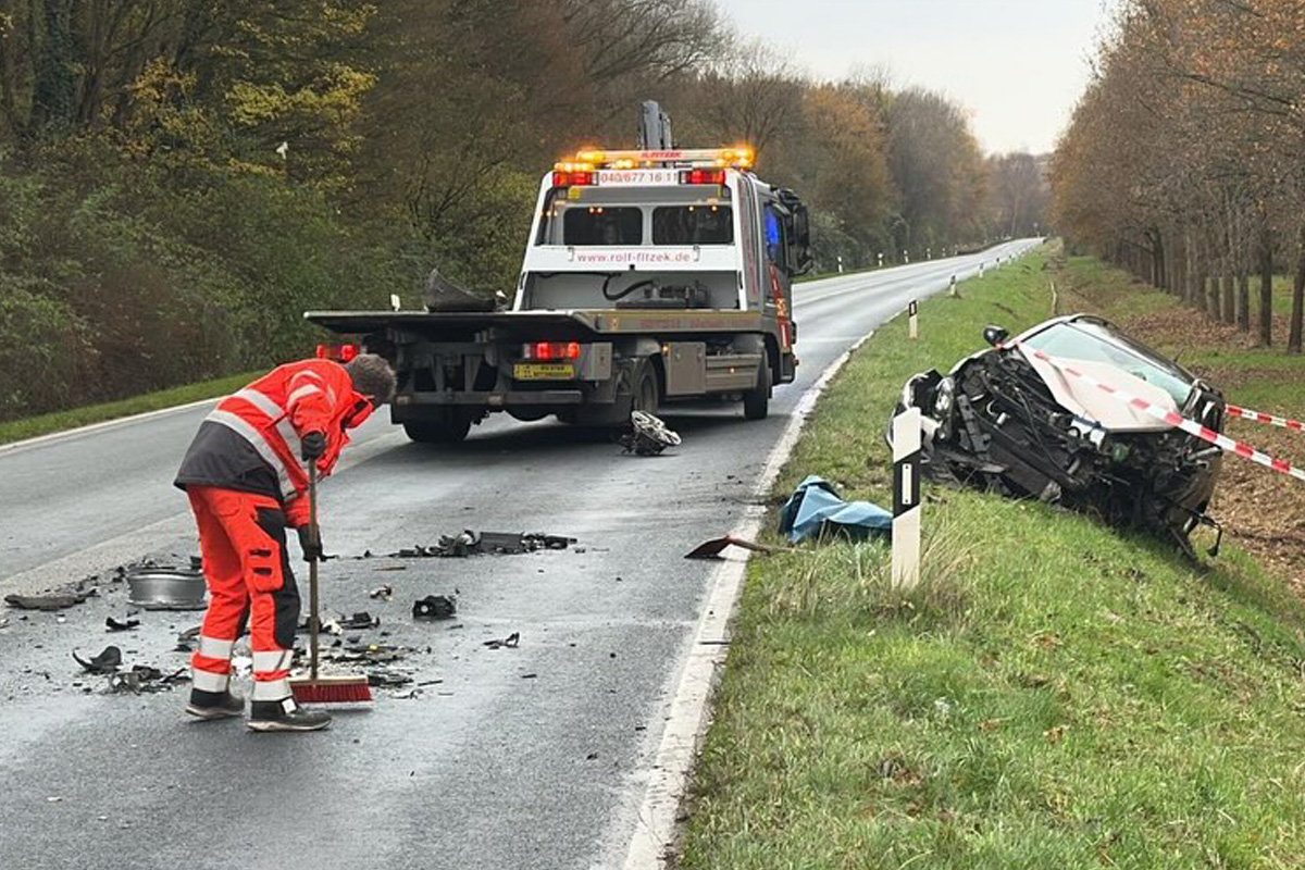 Die Feuerwehr beräumte die Fahrbahn von Trümmern. (Bildquelle: Feuerwehr Stemwarde)