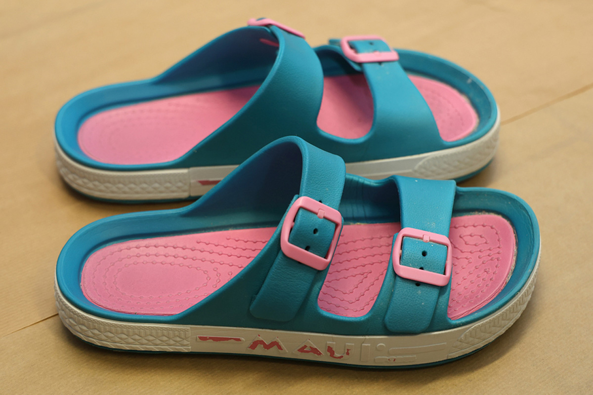 Diese Schuhe trug die Tote, als sie gefunden wurde. (Bildquelle: Polizeipräsidium Nordhessen)
