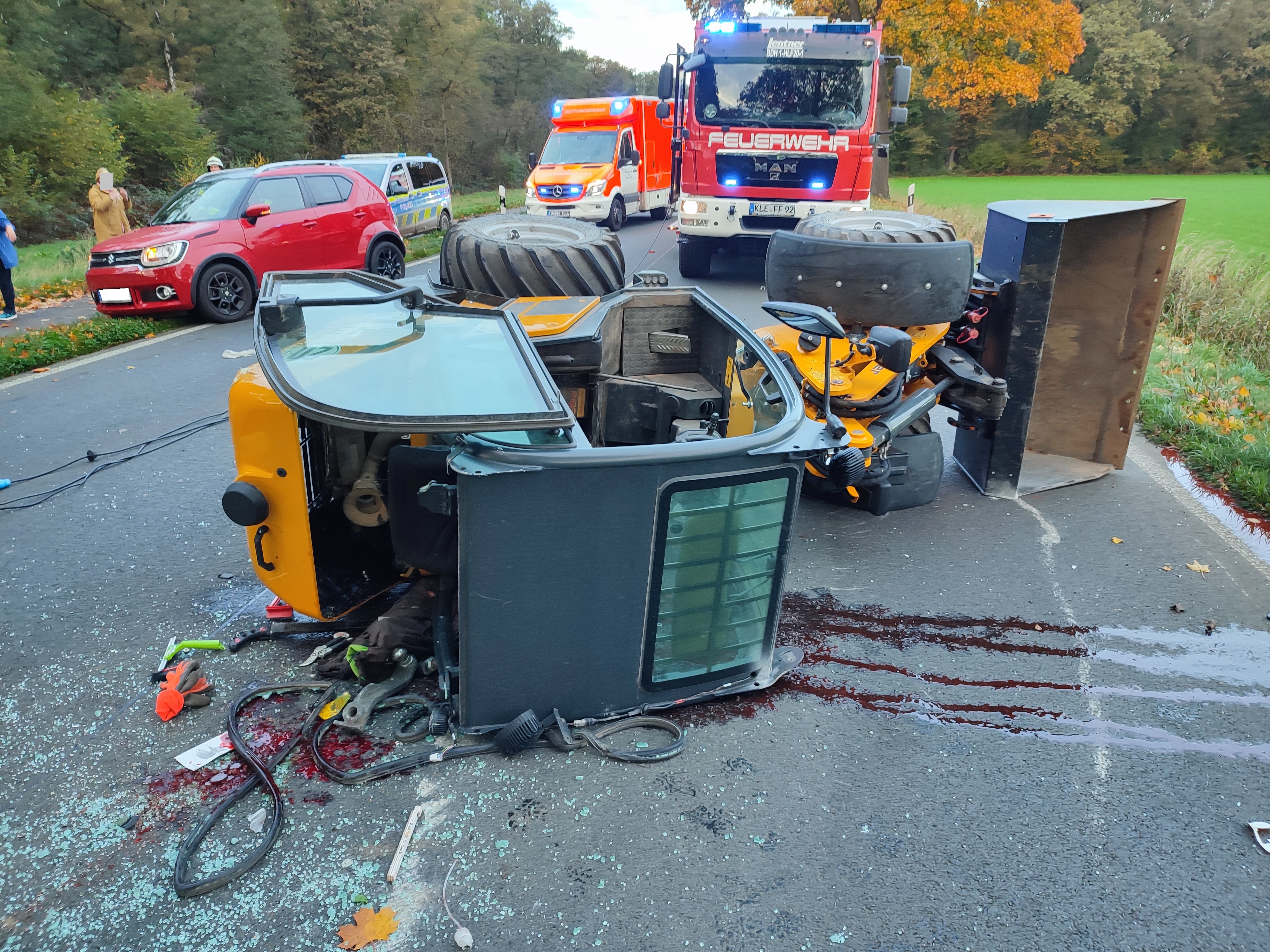 Beim Eintreffen der Rettungskräfte war der Baggerfahrer schon von Ersthelfern befreit worden. Sie leisteten auch Erste Hilfe. Der Busfahrer wurde eingeklemmt und musste von der Feuerwehr befreit werden.