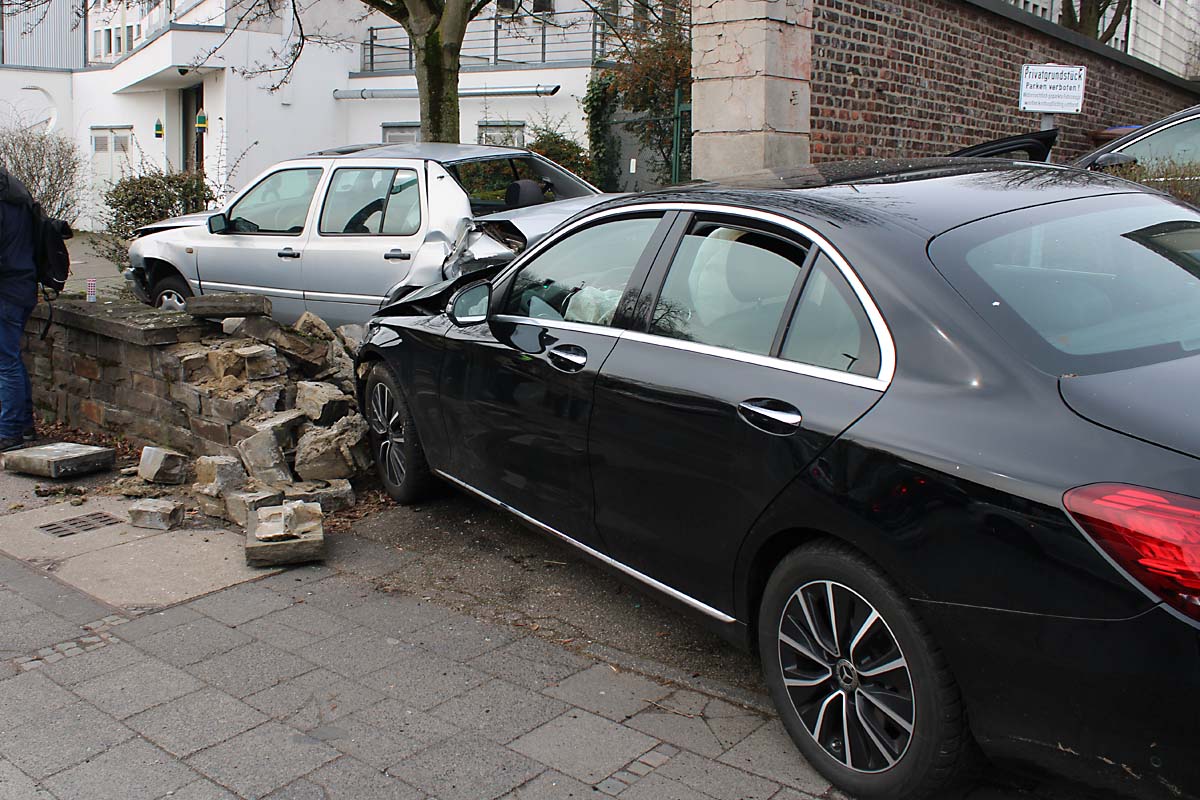 Zwei Pkw nach Unfall in Steinmauer in Bergisch Gladbach (Bildquelle: Polizei Rheinisch-Bergischer Kreis)