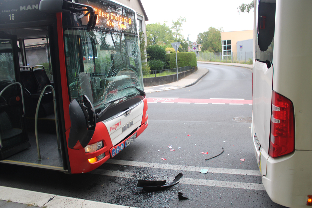 Am Donnerstagmorgen (28.08.2025) stießen auf der Paffrather Straße in Bergisch Gladbach zwei Linienbusse zusammen. Fünf Fahrgäste – darunter drei Kinder – erlitten leichte Verletzungen und kamen ins Krankenhaus.