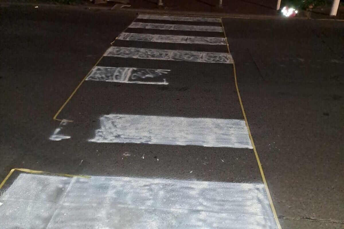 In der Nacht zu Donnerstag sprühten drei Personen eigenmächtig einen Zebrastreifen auf die Neue Hochstraße in Berlin-Gesundbrunnen. Auch selbstgebastelte Verkehrsschilder wurden angebracht. Die Polizei stellte die Verdächtigen und leitete Ermittlungen ein.