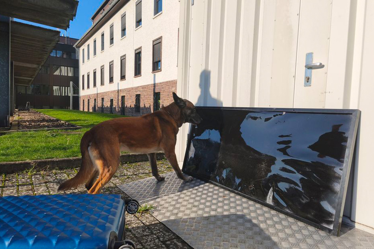 Lemmy erschnüffelte das Versteck in Solarpaneelen. (Bildquelle: Kreispolizeibehörde Höxter)