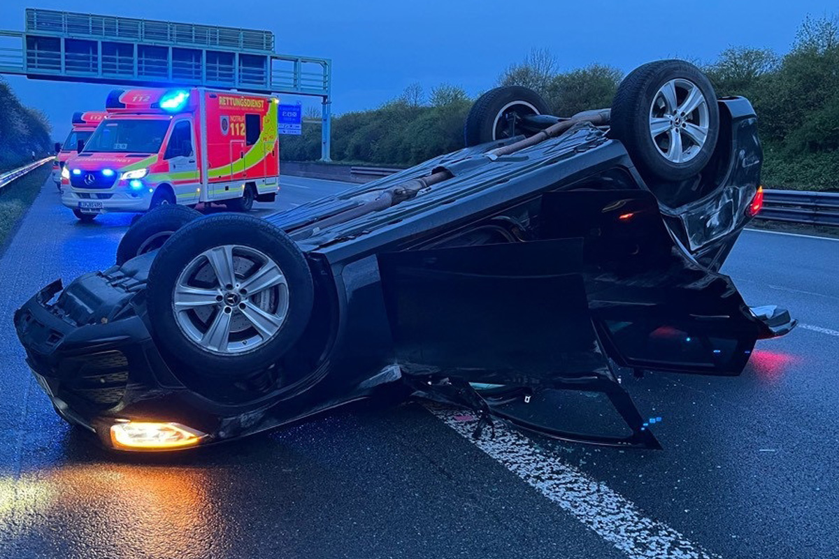Am Sonntag, 12.04.2026, gegen 05:55 Uhr kam es auf der A2 bei Bielefeld (NW) zu einem Unfall. Eine alkoholisierte Autofahrerin fuhr auf ein anderes Fahrzeug auf und überschlug sich. Zwei Mitfahrer wurden leicht verletzt.
