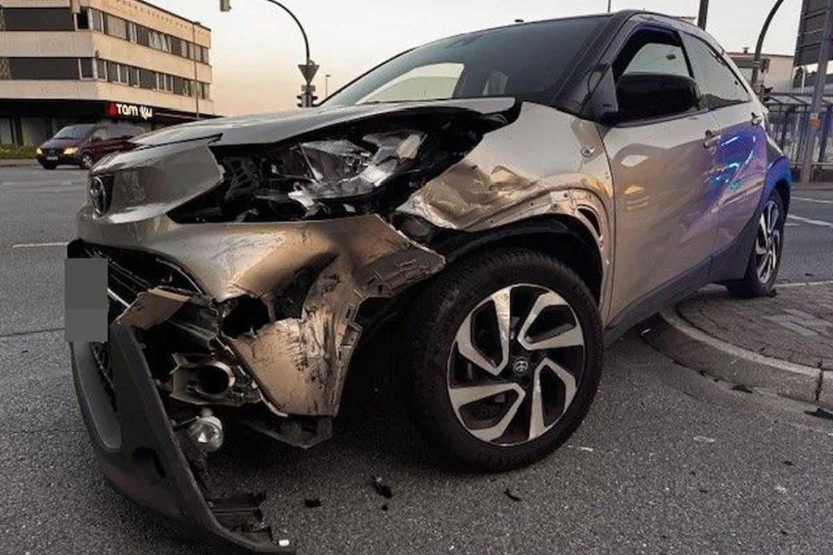 Der Land Rover stieß gegen den Toyota Aygo, sodass sich dieser drehte und an der Verkehrsinsel zum Stehen kam. Der Unfallverursacher setzte seine Fahrt in Richtung Innenstadt fort.