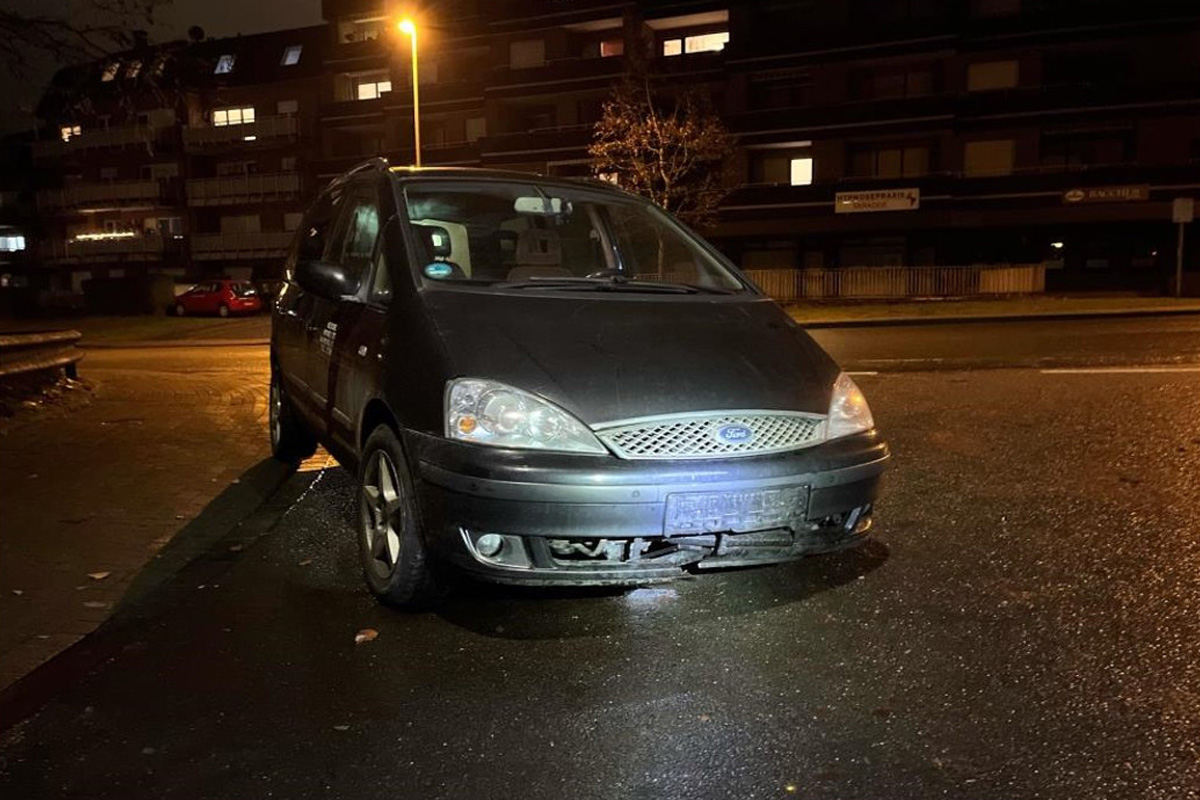 Nach einer kurzen Pause setzte er seine Fahrt mit dem Unfallswagen weiter fort und fuhr in die Donauallee, wo er schließlich zum Stehen kam. An dem Ford Galaxy waren die Reifen der linken Fahrzeugseite geplatzt und die Ölwanne aufgerissen. Die Stoßstange war verformt und das Kennzeichen lag noch am Unfallort.