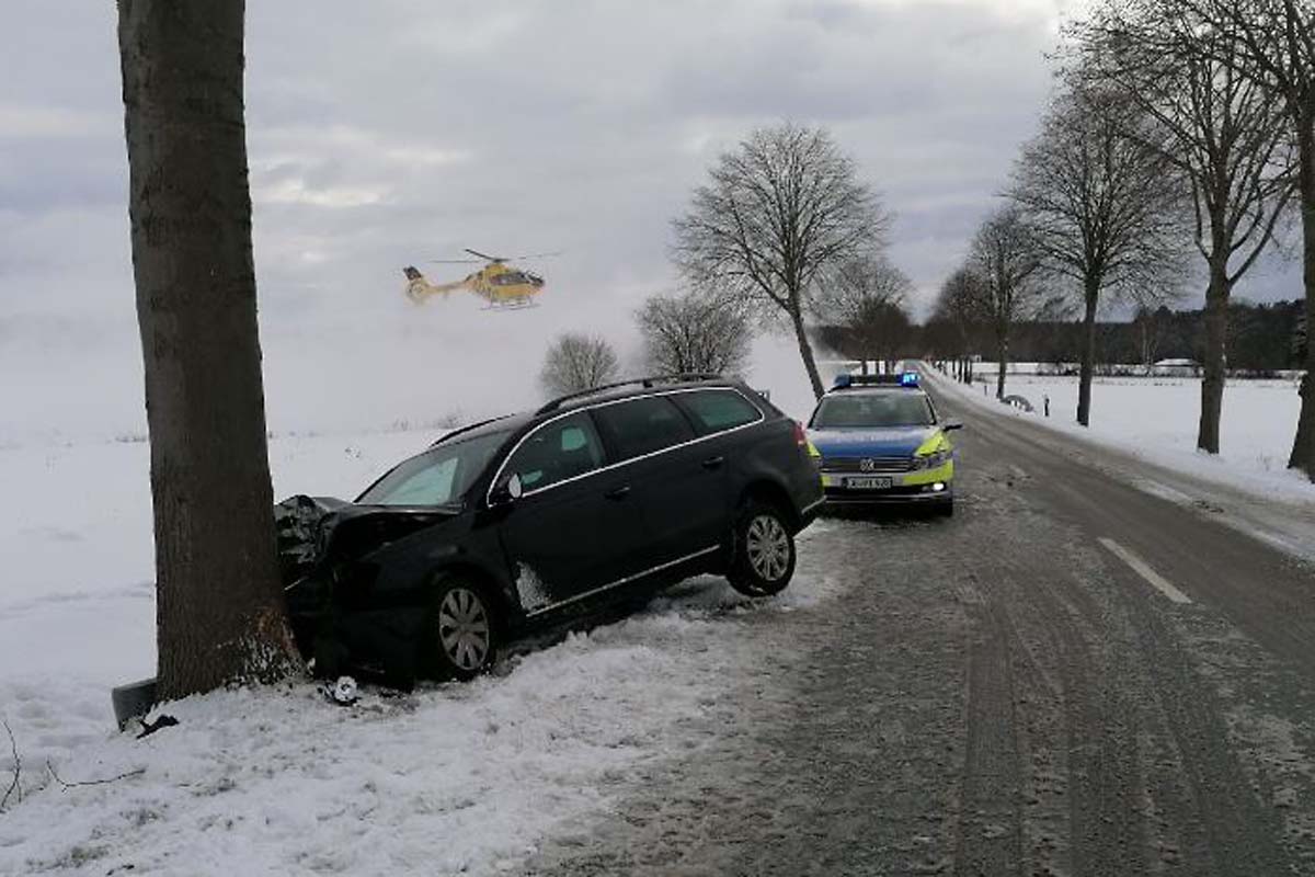 Der VW Passat kam nach rechts von der Fahrbahn ab und prallte gegen einen Baum. Aufgrund der schweren Verletzungen der 35-Jährigen war eine abschließende Befragung nicht möglich. Es entstand ein Sachschaden von gut 10.500 Euro.