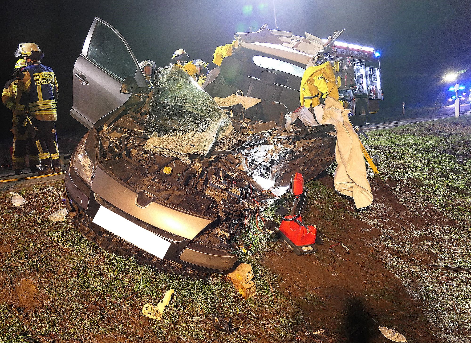 Gegen 00.55 Uhr entdeckte eine Streifenwagenbesatzung das Fahrzeug. Diese war nach einem Einsatz auf dem Rückweg nach Coesfeld. Im Auto fanden die Polizisten den eingeklemmten 27-jährigen Fahrer aus Coesfeld vor. Sie leisteten erste Hilfe und forderten unmittelbar Rettungsdienst und Feuerwehr an.