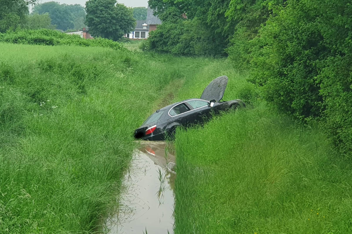 Ausgewichen und in Graben gelandet bei Blender (Bildquelle: Polizeiinspektion Verden / Osterholz)