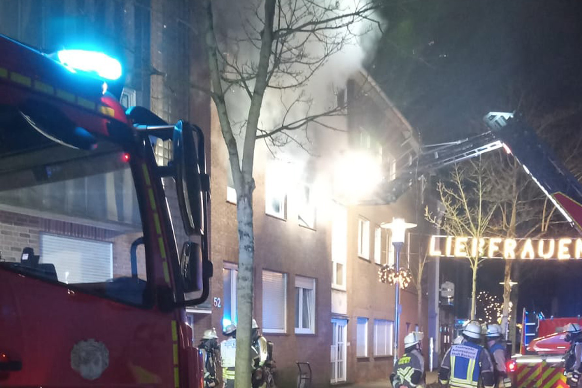 Die Feuerwehr rettete eine Frau und zwei Kleinkinder aus dem 3. Obergeschoss. (Bildquelle: Feuerwehr Bocholt)
