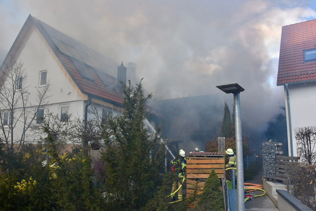 Die Flammen griffen auf das angrenzende Wohnhaus über. (Bildquelle: Feuerwehr Böblingen)