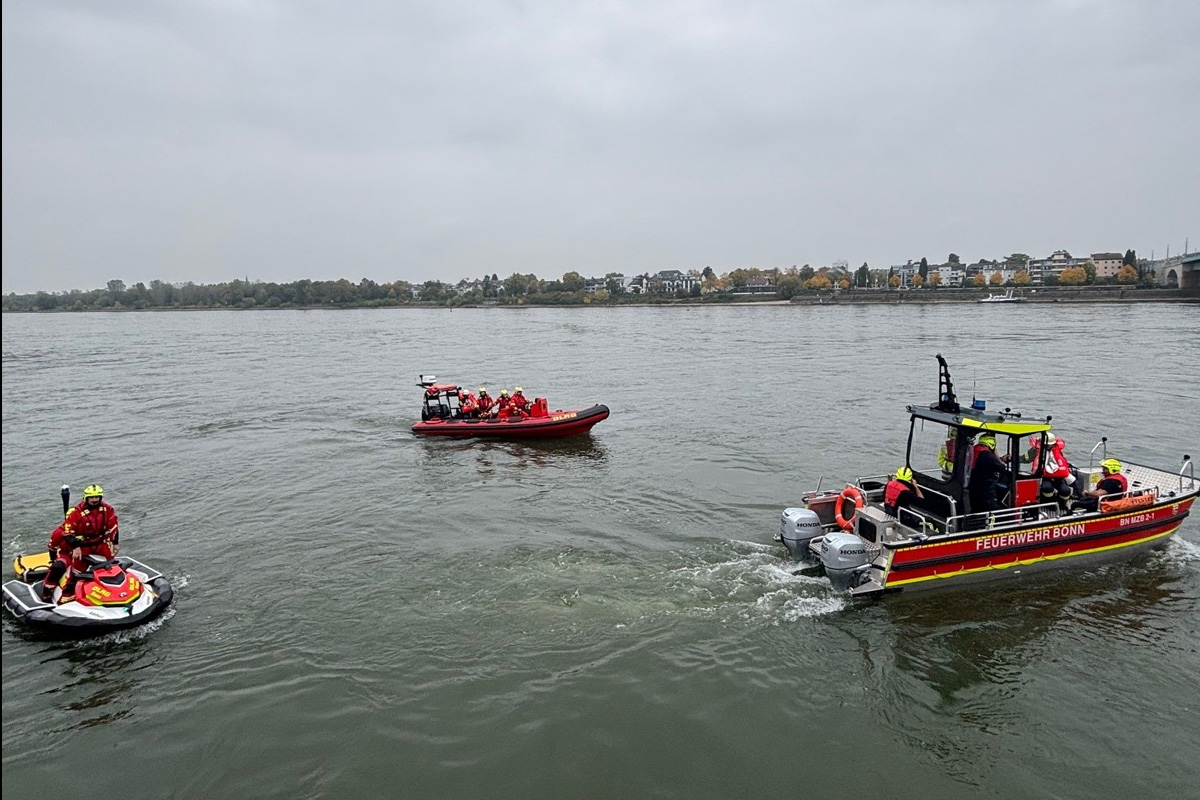 Die Wasserrettung befand sich wegen einer Übung in der Nähe der Unglücksstelle. (Bildquelle: Feuerwehr und Rettungsdienst Bonn)