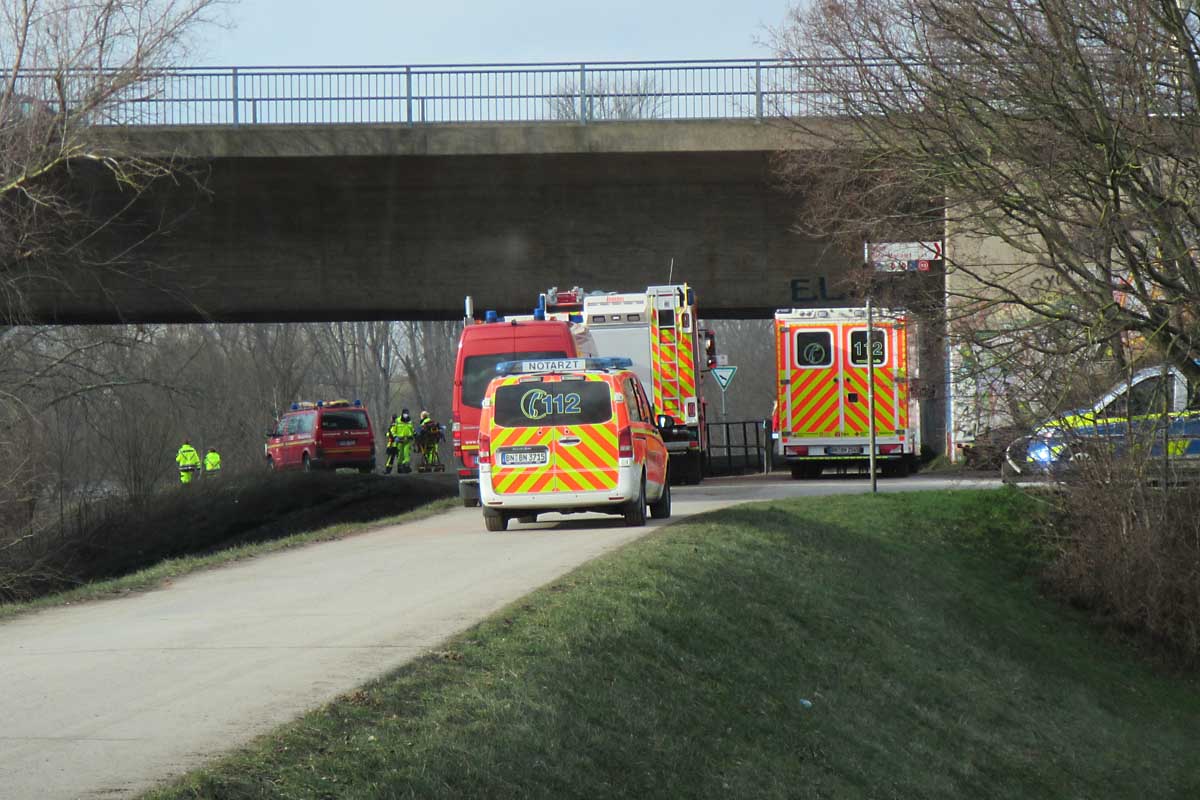 Zu Wasser waren Boote der Berufsfeuerwehr Bonn, Feuerwehr Bornheim, des DLRG und der Wasserschutzpolizei. Insgesamt waren 34 Einsatzkräfte von Feuerwehr und Rettungsdienst (Bonn und Bornheim), 8 Einsatzkräfte der (Wasserschutz)