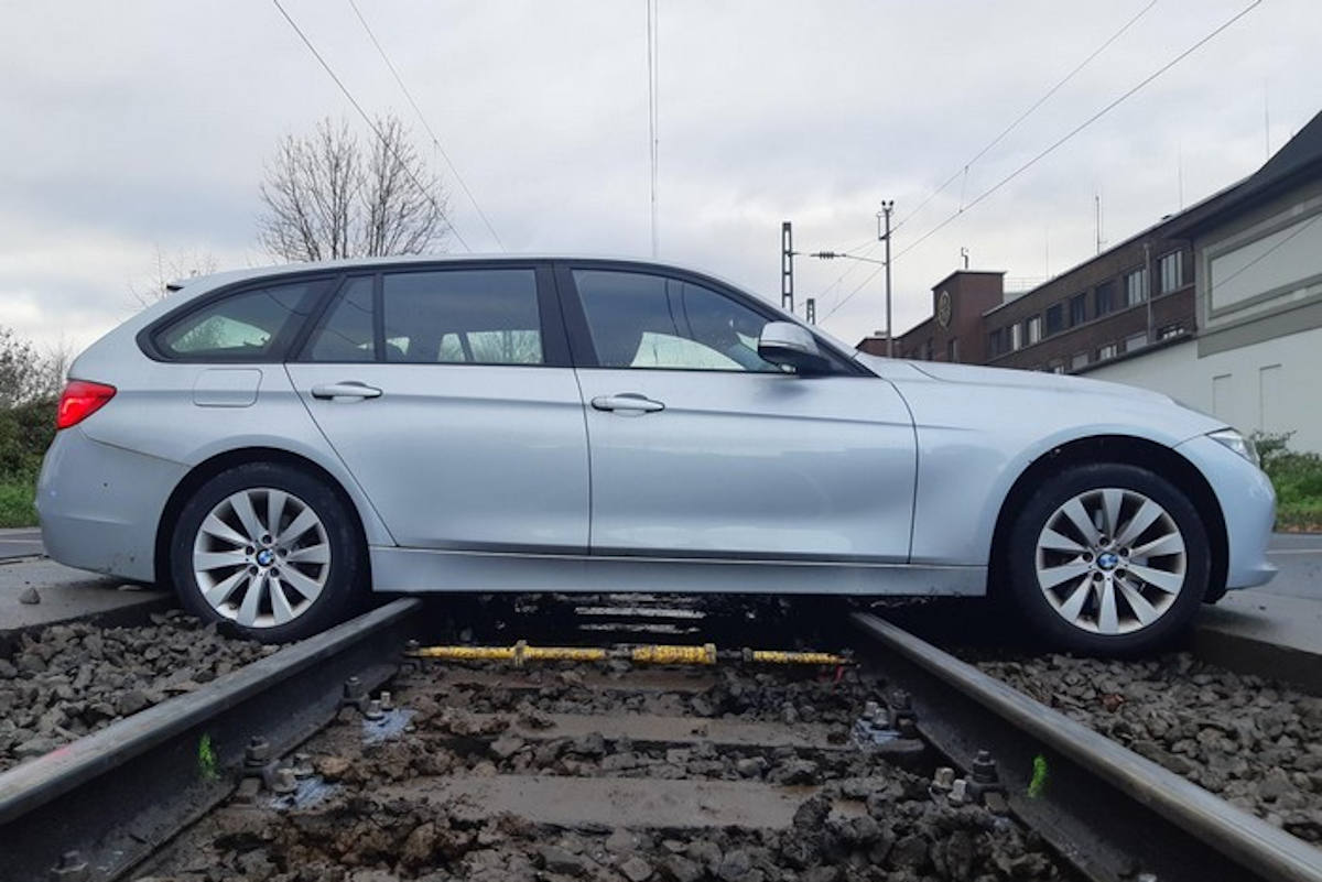 PKW auf dem Gleiskörper aufgesetzt (Bundespolizeidirektion Sankt Augustin)