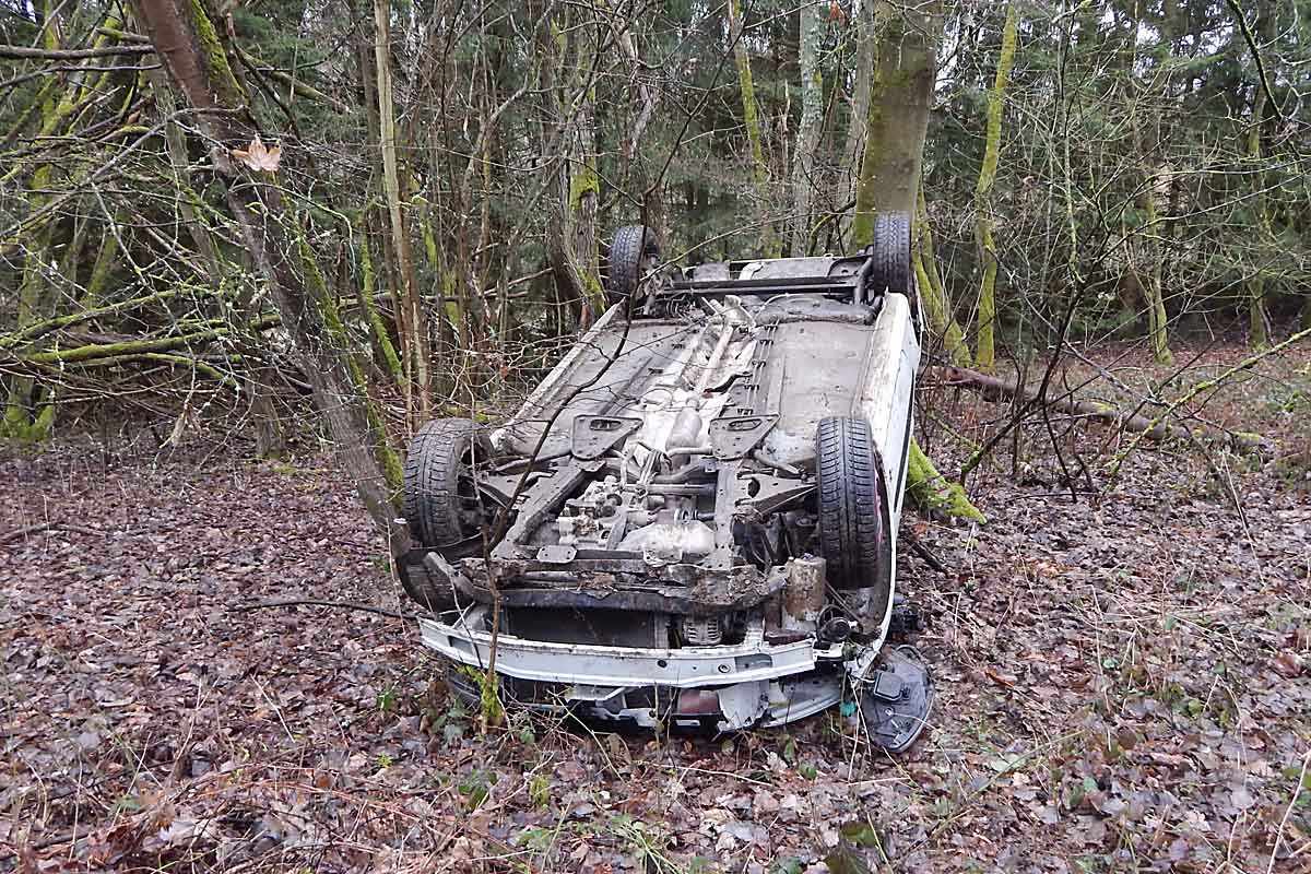 Das Fahrzeug blieb gestern nach Überschlag und Kontakt mit Baumbewuchs total beschädigt auf dem Dach in abschüssigem Gelände liegen, die alleinige 21-jährige Insassin konnte sich jedoch selbständig befreien und die Polizei verständigen.