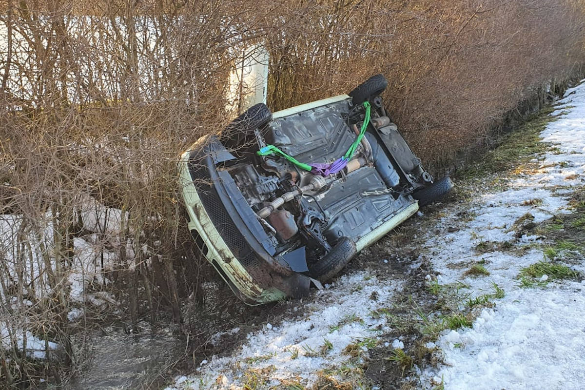 Verkehrsunfall in Borgholz durch Glatteis (Bildquelle: Freiwillige Feuerwehr Borgentreich)