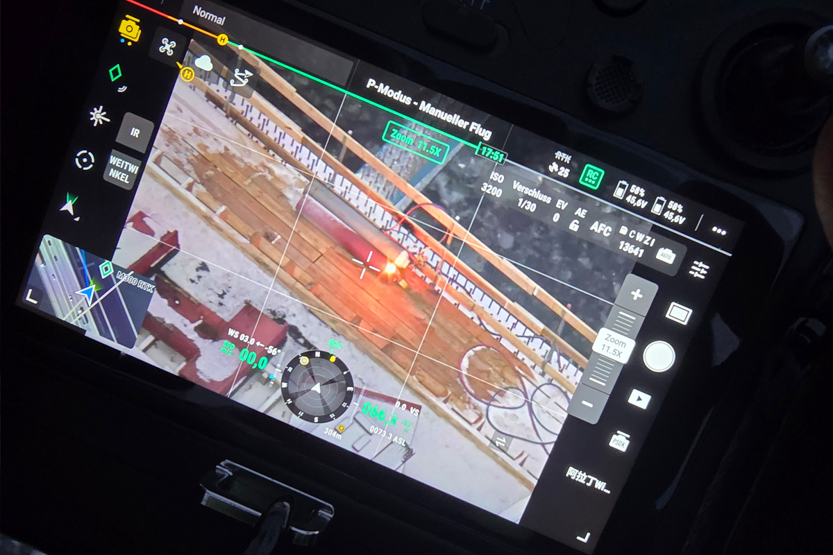 Mit einer Kamera überwacht die Feuerwehr den Status der brennenden Gasflasche. (Bildquelle: Kreisfeuerwehrverband Rendsburg-Eckernförde)
