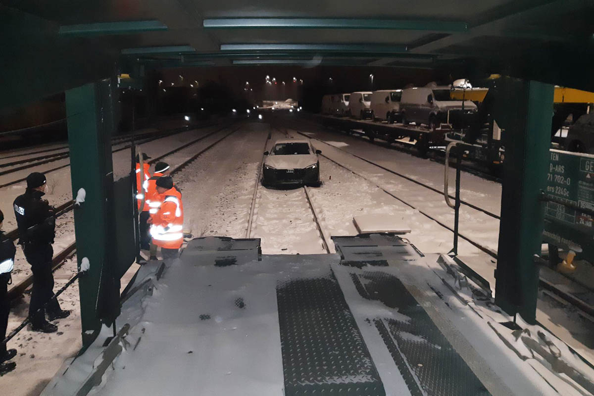 Einen fabrikneuen Audi A5 haben unbekannte Täter im Rangierbahnhof Bremen-Gröpelingen von einem Autotransportzug "abgeladen" und ins Gleis gefahren. Ein Rangierer entdeckte den Wagen, der mit laufendem Motor und durchdrehenden Rädern im Schnee stand.