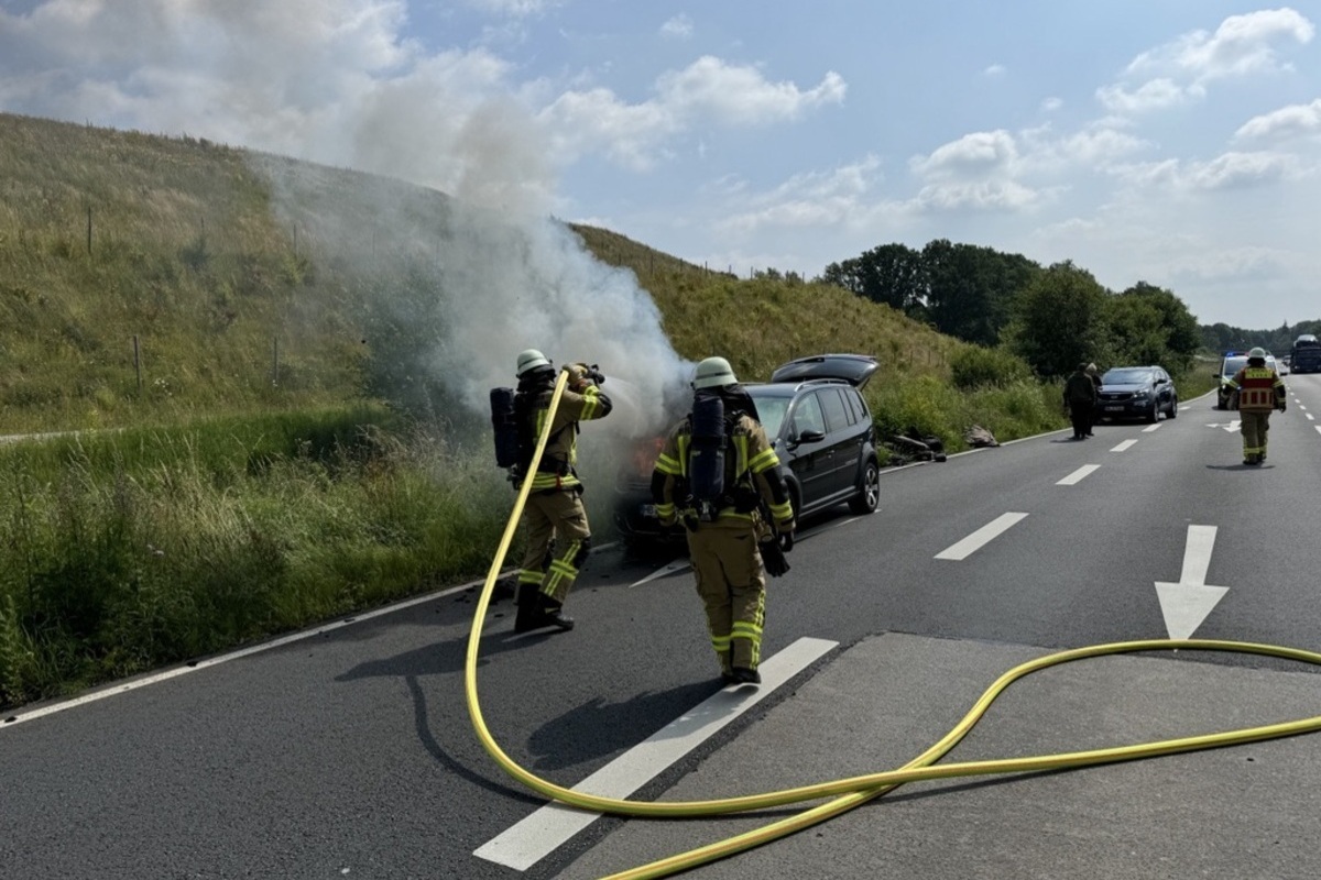 Aus bislang unbekannter Ursache geriet ein Volkswagen im Bereich des Motorraumes in Brand. Das Feuer konnte schnell durch einen Trupp des eingesetzten Hilfeleistungslöschfahrzeugs gelöscht werden. Während der Löschmaßnahmen wurde die Einsatzstelle durch die Polizei gegen den fließenden Verkehr abgesichert.