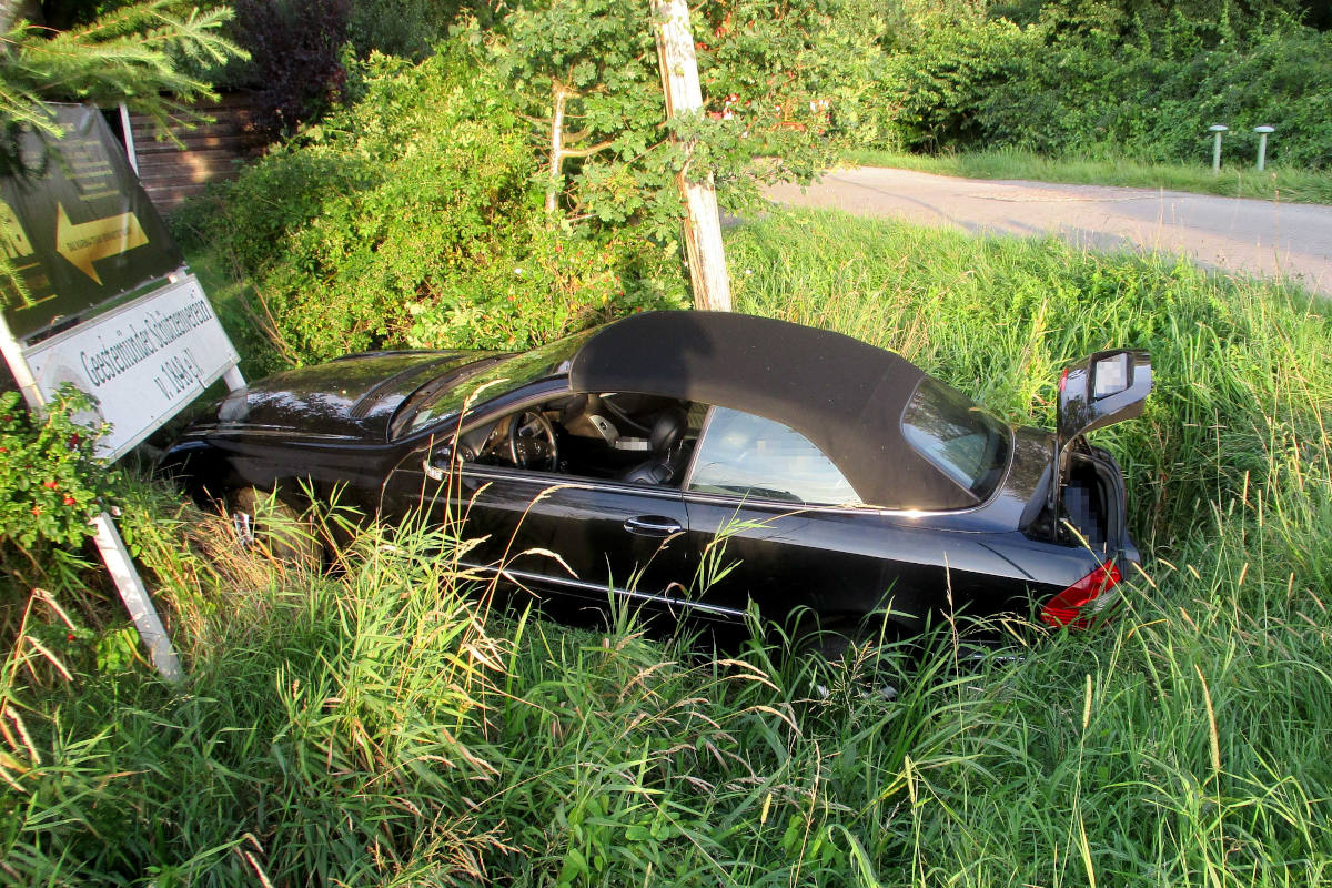Die Frau und ihr Beifahrer gaben an, keine Verletzungen davongetragen zu haben. Da sich den Polizeibeamten der Verdacht aufdrängte, dass die Fahrerin unter Alkoholeinfluss stand, wurde eine Blutprobe angeordnet. Das Cabriolet war nicht mehr fahrbereit und wurde abgeschleppt. Die Polizei schätzt den Sachschaden auf rund 10.000 Euro.