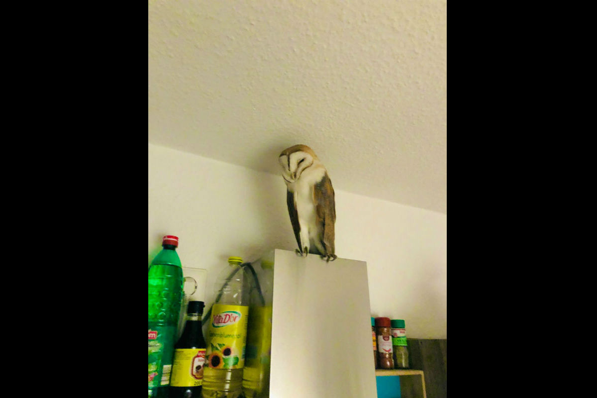 Zwei Beamte der Feuerwehr Bremerhaven nahmen sich der Sache an und stellten beim Eintreffen fest, dass es sich um eine ausgewachsene Schleiereule handelt. Das unverletzte Tier, welches sich bereits mehr als 24 Stunden in der Küche aufhielt, war augenscheinlich nicht verletzt und erfreute sich bester Gesundheit.