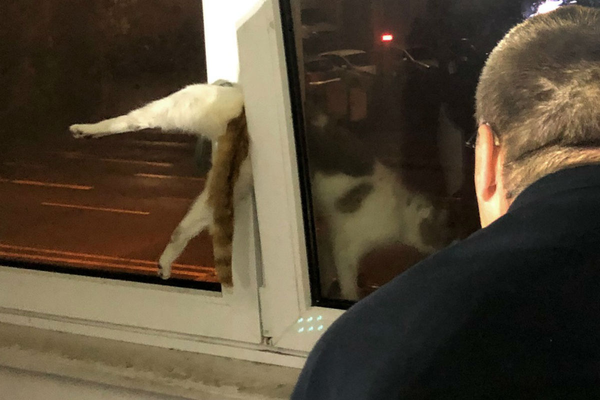 Da das 19-jährige Herrchen nicht vor Ort war und telefonisch nicht erreicht werden konnte, wurde die Wohnungstür von den Polizisten aufgebrochen, um möglichst schnell zur Katze zu gelangen. Die Katze war jedoch so sehr im Fensterrahmen eingeklemmt, dass die Feuerwehr zur Unterstützung angefordert wurde, um der Katze keine weiteren Schmerzen zuzufügen.
