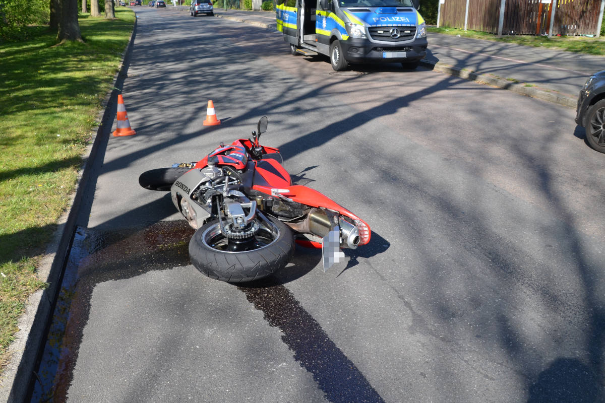 Der 30-jährige Fahrer des Zweirades befuhr die Daimlerstraße in nördliche Richtung mit einer deutlich überhöhten Geschwindigkeit. Als er den am rechten Fahrbahnrand geparkten Geschwindigkeitsmesswagen bemerkte, versuchte er eine Messung zu verhindern, überbremste und verlor die Kontrolle über sein Kraftrad.