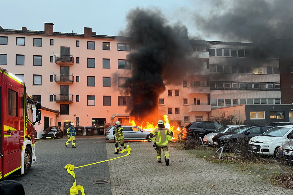 In der Innenstadt von Bremerhaven gerieten am Dienstagmorgen vier Fahrzeuge in Brand. Die Feuerwehr rückte mit zwölf Einsatzkräften an, konnte aber nicht verhindern, dass alle Fahrzeuge ausbrannten.