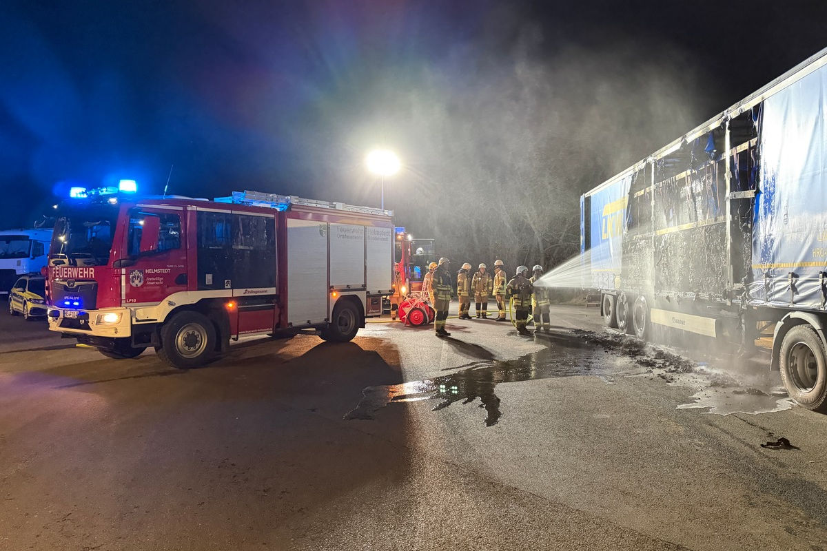 Nach Eintreffen der Feuerwehr übernahm ein Trupp aus Helmstedt unter Atemschutz und einer Leitung den einen LKW sowie ein Trupp aus Büddenstedt mit einer Leitung den zweiten LKW. Teilweise musste die Ladung per Hand entladen werden, dabei handelte es sich um gepressten Restmüll in Quaderballen, welche zur Verbrennung vorgesehen waren. Das Feuer konnte zügig gelöscht werden.