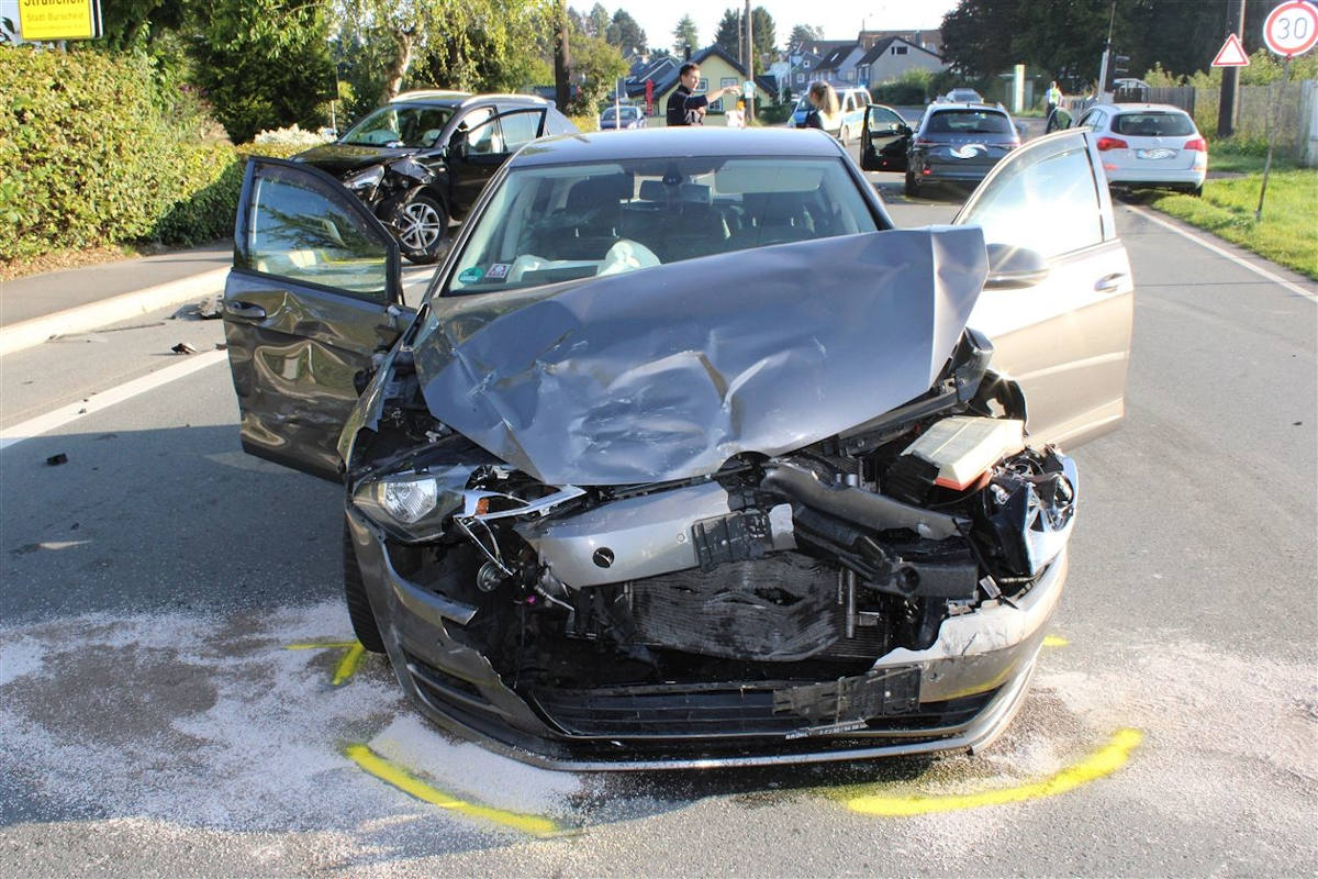 Er fuhr ungebremst hinten auf den VW einer 42-jährigen Odenthalerin auf, den er durch die Wucht auf den davor wartenden Skoda eines 43-jährigen Bergisch Gladbachers schob. Der VW wurde hinten rechts getroffen und deshalb bei dem Zusammenstoß leicht nach links in den Gegenverkehr geschoben, was dazu führte, dass er zusätzlich noch frontal mit dem Renault eines 57-jährigen Wermelskircheners kollidierte, der in Richtung Odenthal fuhr.