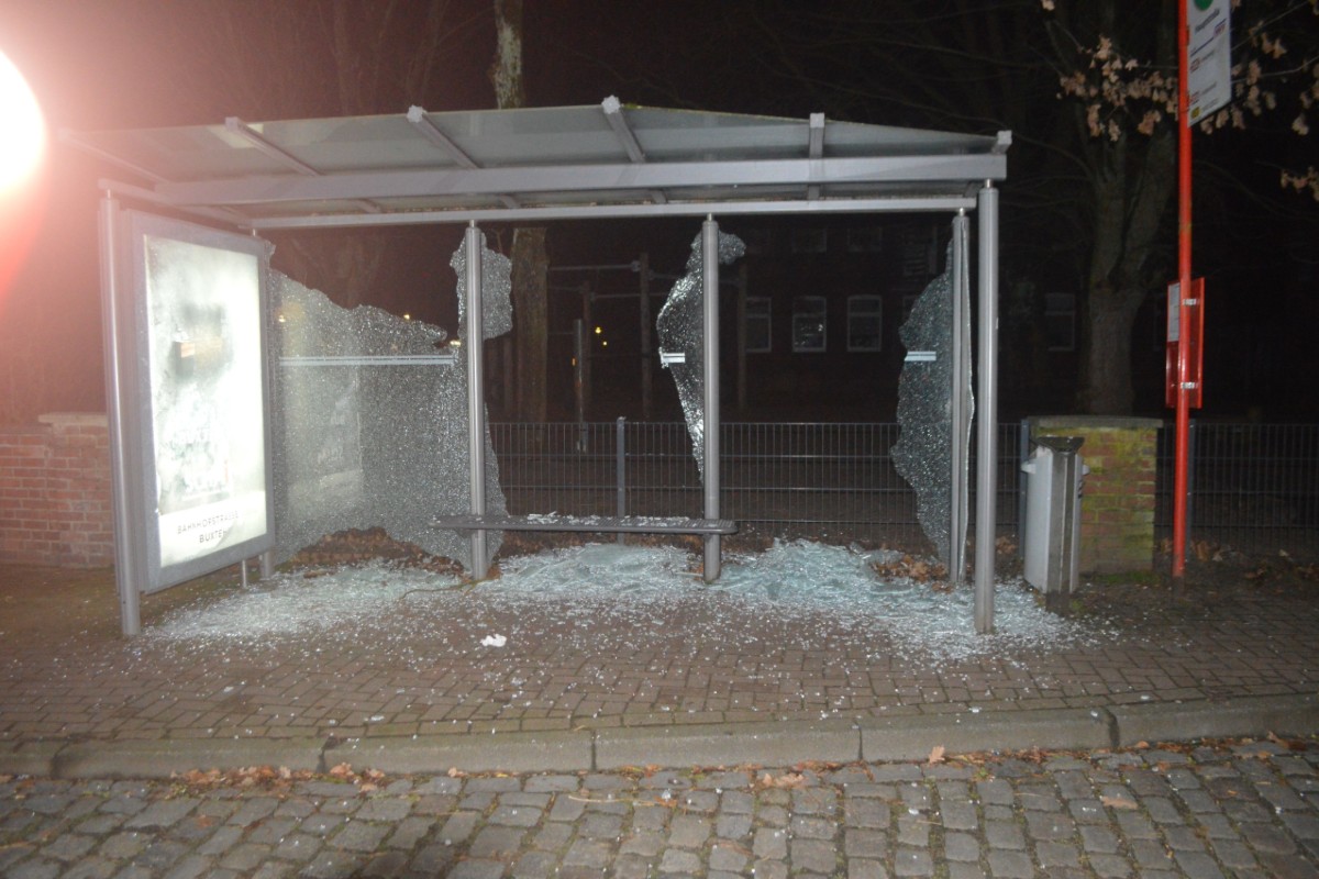 Bei zwei Bushaltestellen wurden zudem sämtliche Scheiben zerstört und bei der Integrativen Gesamtschule Buxtehude zwei Fensterscheiben beschädigt.