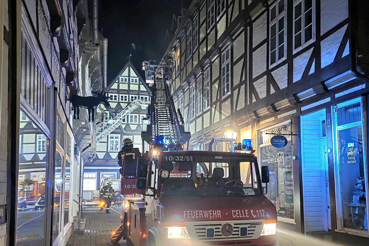 In der Nacht zu Sonntag, 26.10.2025, geriet in der historischen Altstadt von Celle (NI) die Küche eines Gastronomiebetriebs in Brand. Mehrere Personen waren in dem Fachwerkhaus eingeschlossen und mussten durch die Feuerwehr gerettet werden. Rund 100 Einsatzkräfte waren vor Ort.