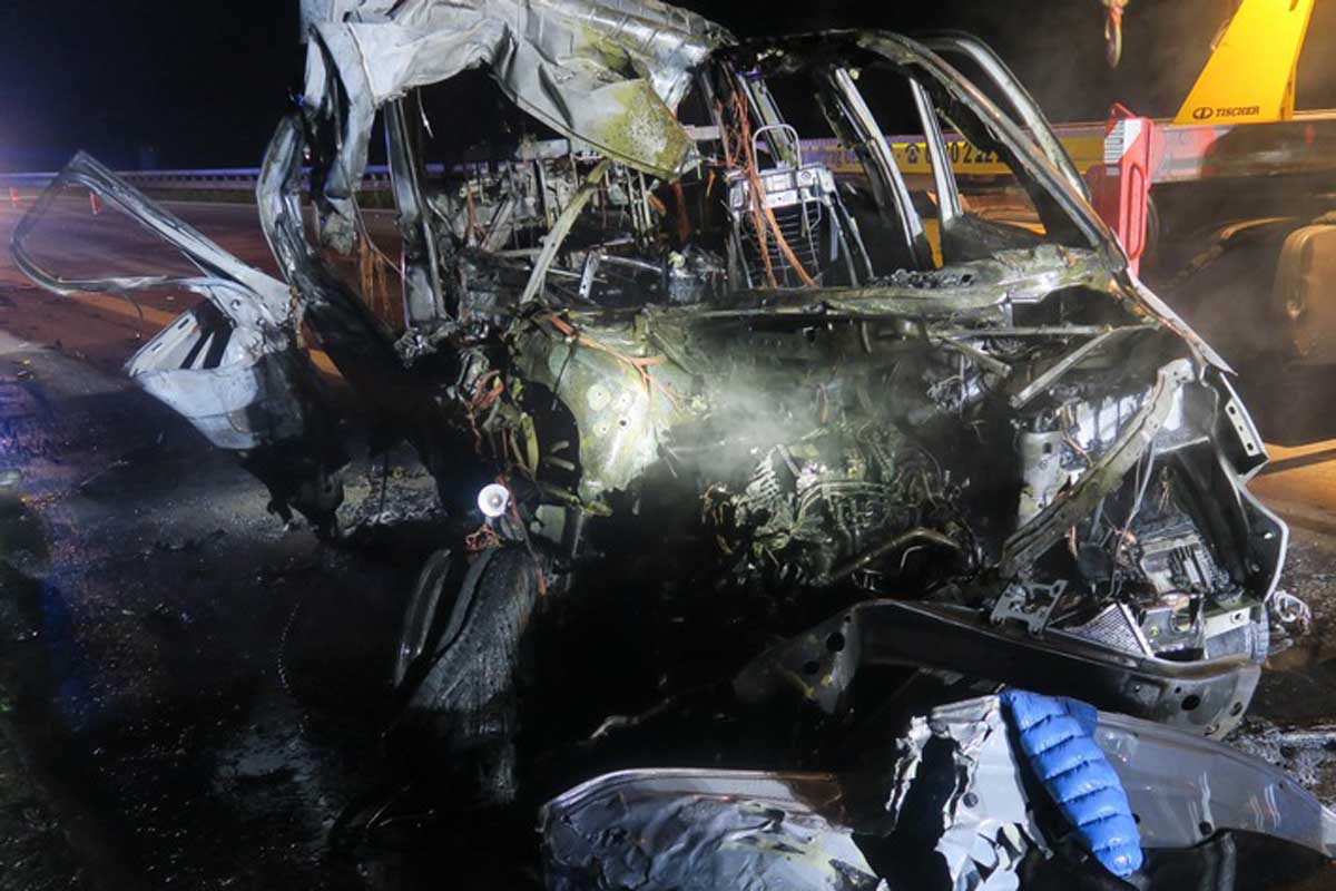 Nach dem Zusammenstoß kam der Transporter auf dem Seitenstreifen zum Stehen. Der Fahrzeugführer konnte sich selbstständig aus dem Fahrzeug befreien. Kurz darauf ging der Volkswagen in Flammen auf und brannte vollständig aus.