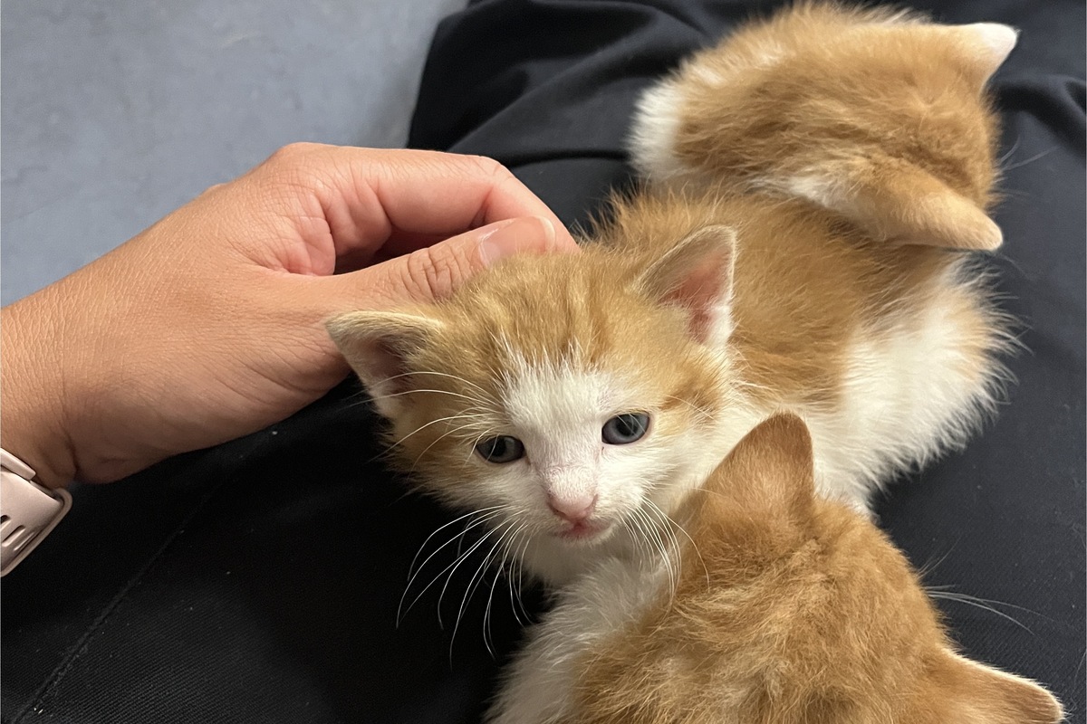 In der Nacht vom 15. auf den 16.06.2023 wurden drei kleine, weiß-braune Katzenbabys vor dem Eingang einer Arztpraxis in der Ortslage Daaden von einem Zeitungszusteller gefunden.