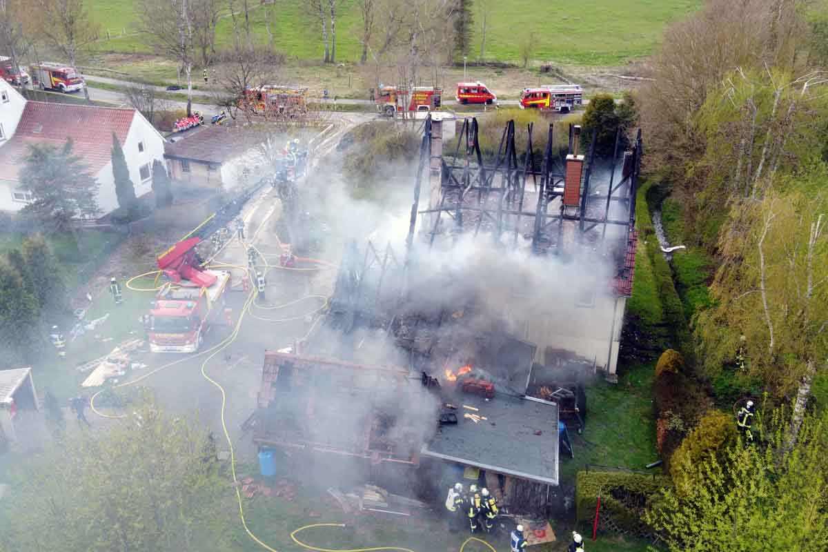 Bereits auf der Anfahrt der ersten Kräfte war eine deutliche Rauchsäule erkennbar. Bei Eintreffen stand gestern der Dachstuhl des betroffenen Einparteienhauses bereits in Vollbrand, sodass eine Stichworterhöhung von "Feuer 3" auf "Feuer 4" durchgeführt und somit weitere Einheiten zur Einsatzstelle alarmiert wurden. Über 85 Einsatzkräfte rückten mit insgesamt rund 25 Fahrzeugen an, um das Feuer in Detmold zu bekämpfen.