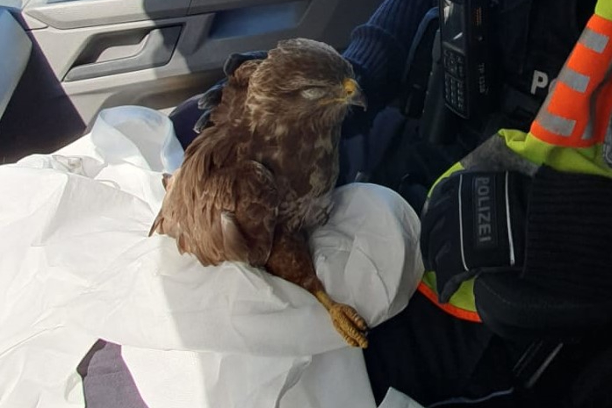Die Autobahnpolizei rettet verletzten Falken auf der A4 Höhe Gotha