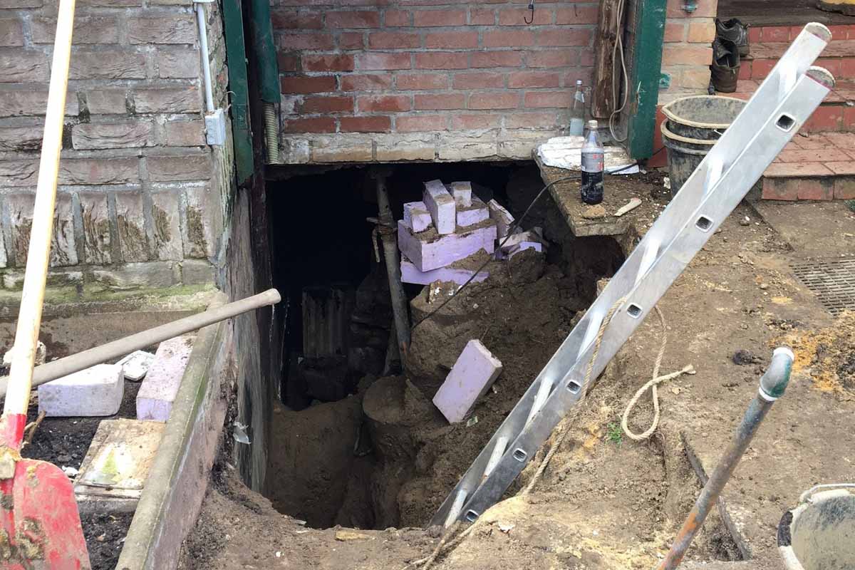 Beim Aushub eines Schachtes an der Hauswand war heute die Schachtwand abgerutscht und hatte den Hauseigentümer unter sich begraben.