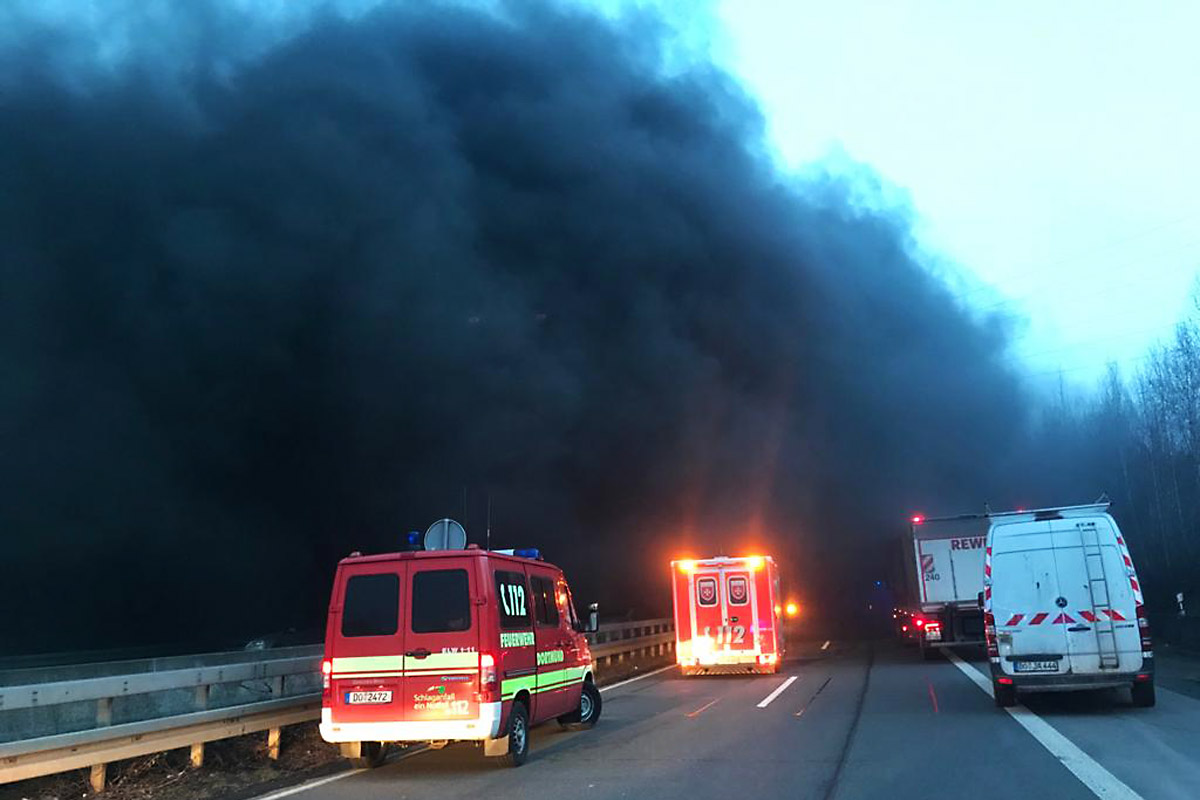 Bei Eintreffen der ersten Einsatzkräfte war eine starke Rauchentwicklung aus der betroffenen Tunnelröhre in Fahrtrichtung Lünen zu erkennen.