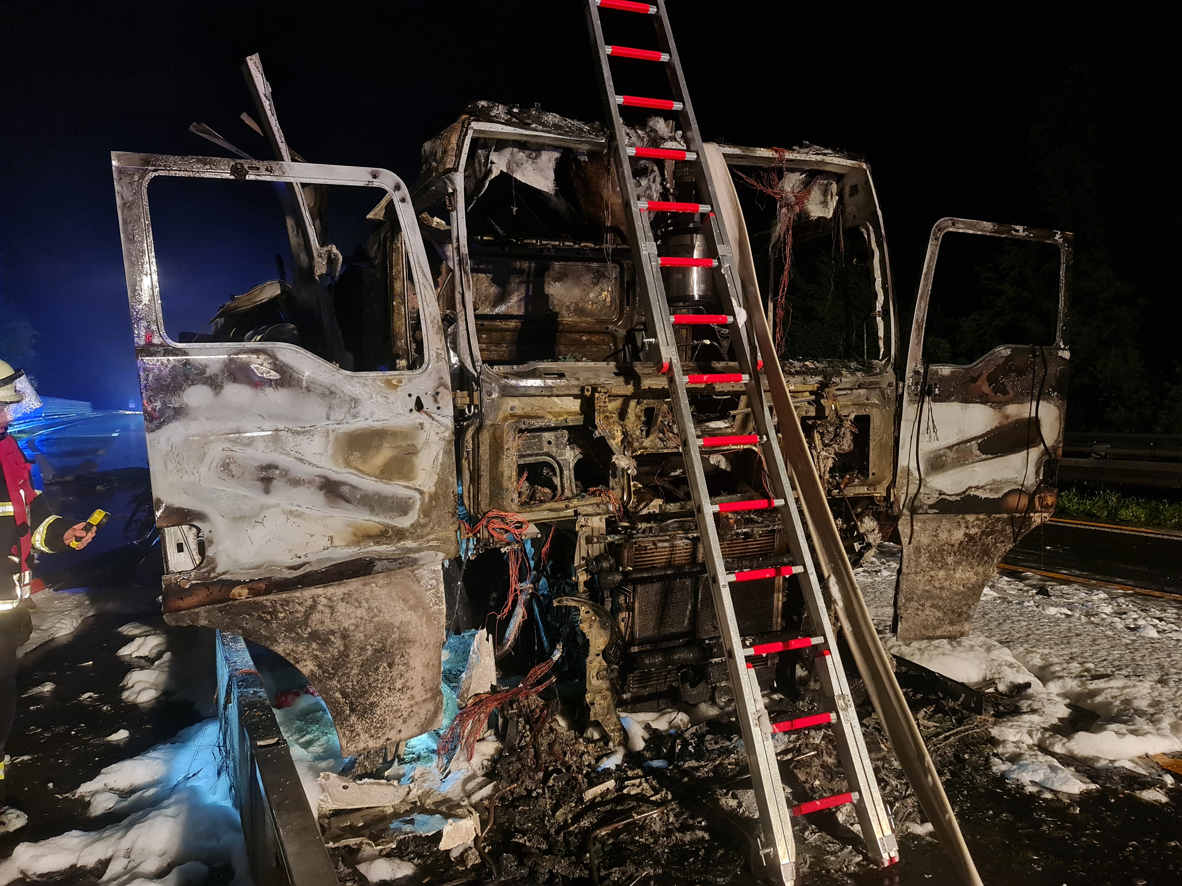 Die Lösch- und Aufräumarbeiten dauerten bis circa 6 Uhr. Erst dann konnten die Reste des LKW durch eine Bergungsfirma, mittels Unterstützung der Feuerwehr, von der Autobahn beseitigt werden.
