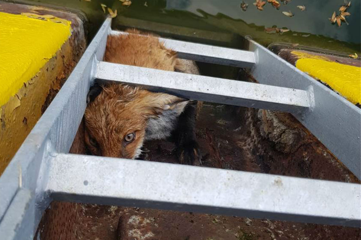 Am Freitagnachmittag fiel einem Begleitboot eines Ruderbootes gegen 16.10 Uhr in Ellinghausen in Höhe der Altmengeder Straße ein Fuchs in höchster Not auf. Das Tier kauerte in einer Nische zwischen einer Spundwand und einer Aufstiegsleiter.
