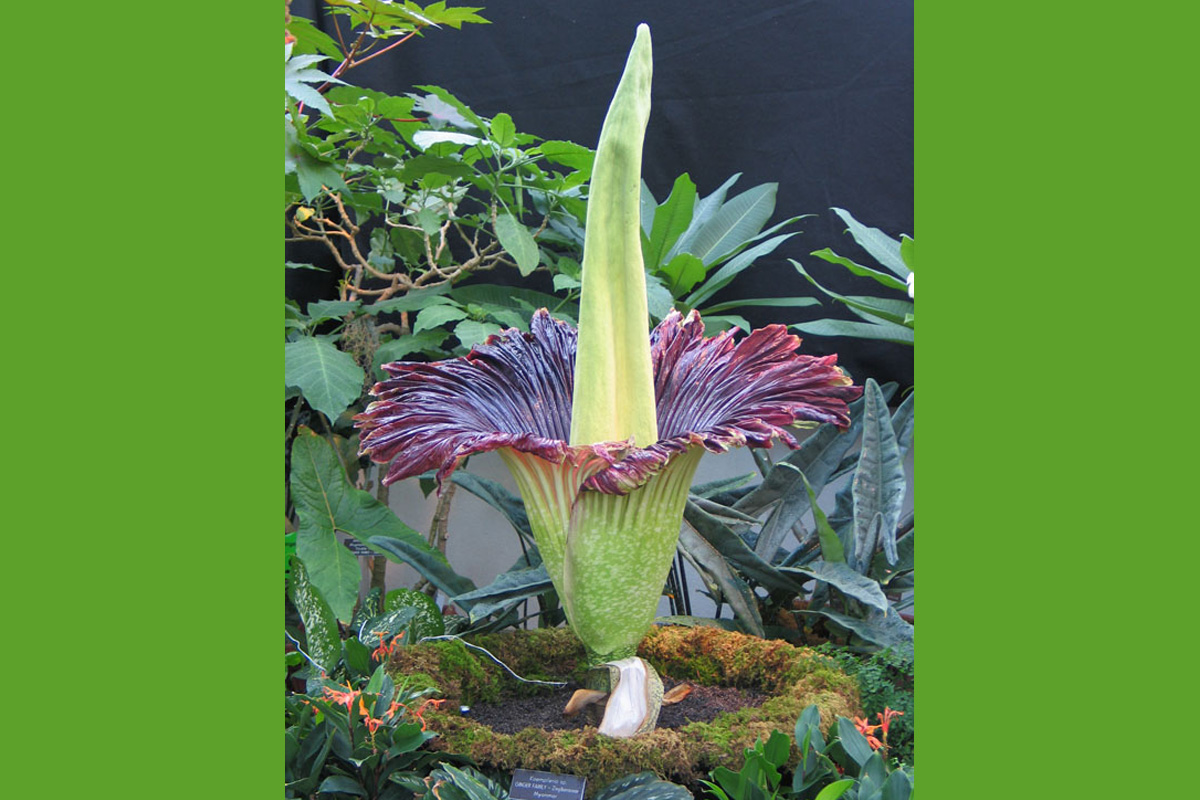 Ein eher kleineres Exemplar des Titanenwurz. (Bildquelle: https://commons.wikimedia.org/wiki/File:Titan_Arum_Nov20_2005.jpg - Wikipedia Commons)
