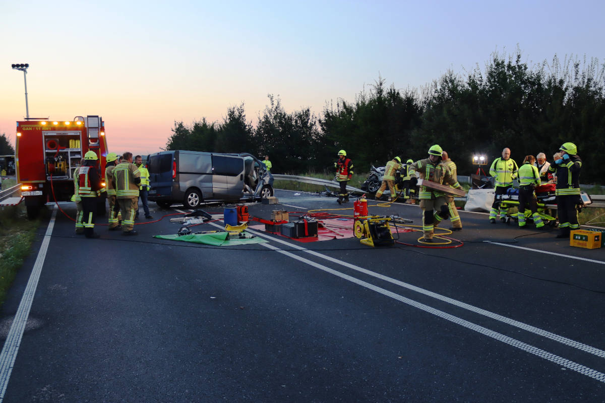 Der Transporter wurde im Bereich des Beifahrers besonders stark getroffen. Durch die Wucht des Aufpralls wurde der Fahrer des Mercedes sowie seine auf dem Rücksitz befindliche Mitfahrerin tödlich verletzt. Der weitere Beifahrer des Mercedes wurde durch den Aufprall lebensgefährlich verletzt und musste durch die Rettungskräfte befreit werden. Er wurde anschließend mit einem Rettungswagen in ein Krankenhaus der Maximalversorgung transportiert.