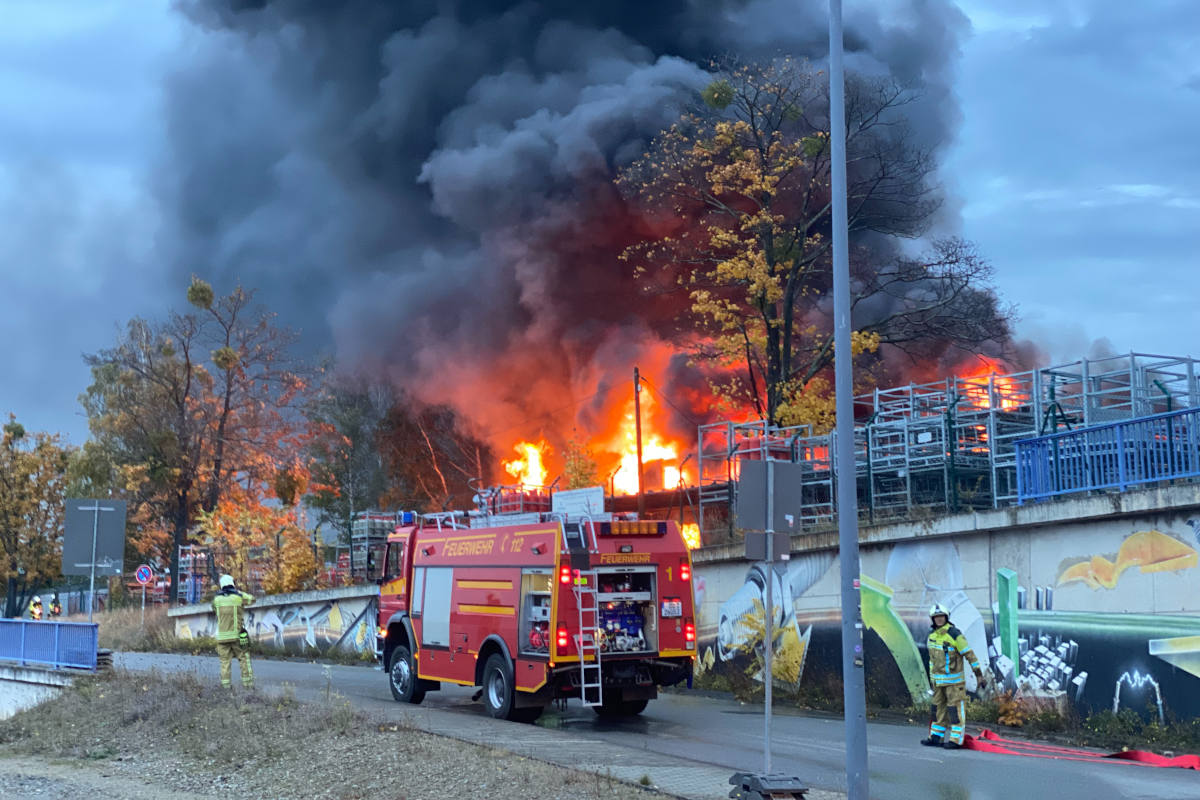 Weiterhin laufen die Vorbereitungen für den Einsatz von Löschschau, um die Kühl- und Löschwirkung zu erhöhen. Die Feuerwehr prüft derzeit weitere Zugangsmöglichkeiten zu dem Objekt, um weitere Riegelstellungen aufzubauen. Die Mitarbeiterinnen und Mitarbeiter der betroffenen Firma konnten sich rechtzeitig in Sicherheit bringen, so dass bislang keine Verletzten zu beklagen sind.