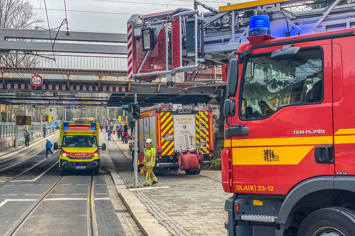Als die Einsatzkräfte von Feuerwehr und Rettungsdienst vor Ort in Dresden eintrafen, konnte der Notarzt nur noch den Tod des Mannes feststellen (Bildquelle: Feuerwehr Dresden)