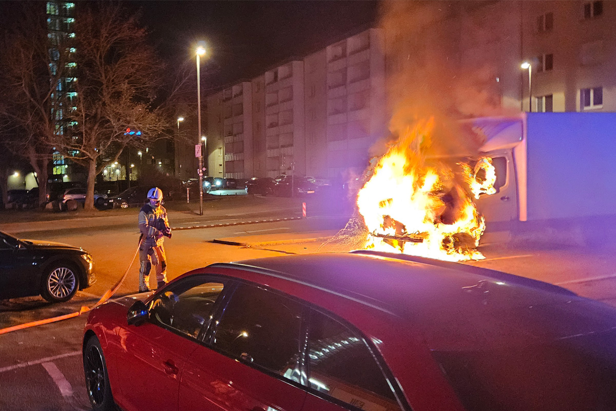 Auf einem Parkplatz in der Dresdner Seevorstadt (SN) sind in der Nacht zum Donnerstag, 12.03.2026, zwei Kleintransporter in Brand geraten. Die Feuerwehr brachte das Feuer schnell unter Kontrolle. Verletzt wurde niemand.