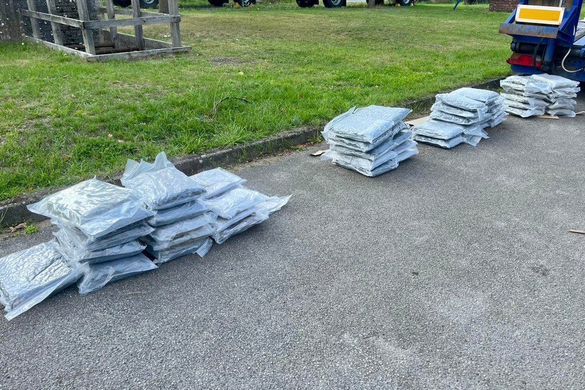 Hier wurden dann verteilt auf vier Paletten insgesamt 55 Beutel mit insgesamt über 52 Kilogramm Marihuana gefunden und sichergestellt.