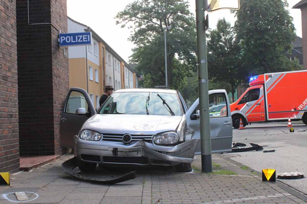 Da hatten es die Polizisten zur Unfallaufnahme nicht weit! Zwei Autos sind am Donnerstagmorgen (5. August, 7:55 Uhr) auf einer Kreuzung in Obermarxloh zusammengestoßen - eines davon landete direkt vor der dortigen Polizeiwache.