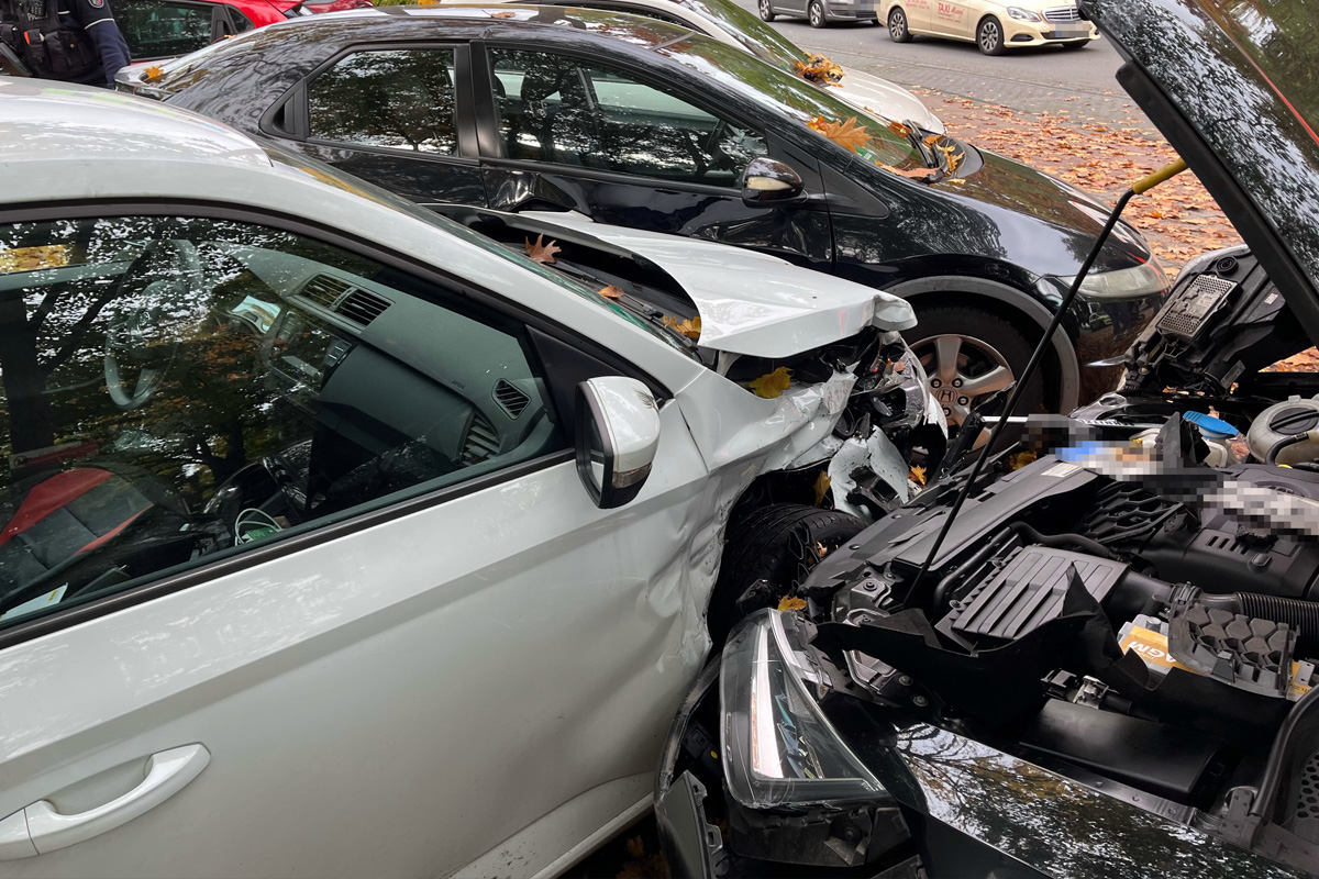 Danach fuhr der Wagen über den angrenzenden Rad- und Fußweg auf den Parkplatz einer Kindertagesstätte. Dort kollidierte der Seat mit einem geparkten Pkw und schob diesen gegen vier weitere geparkte Fahrzeuge.